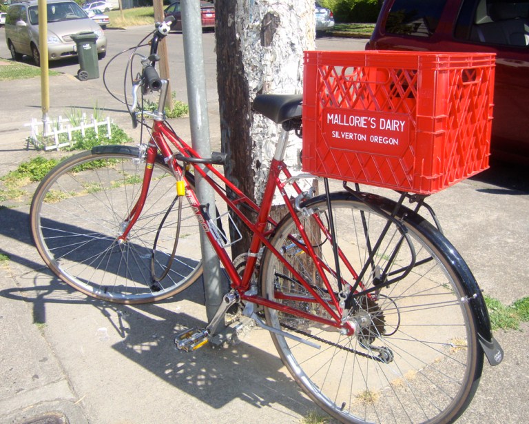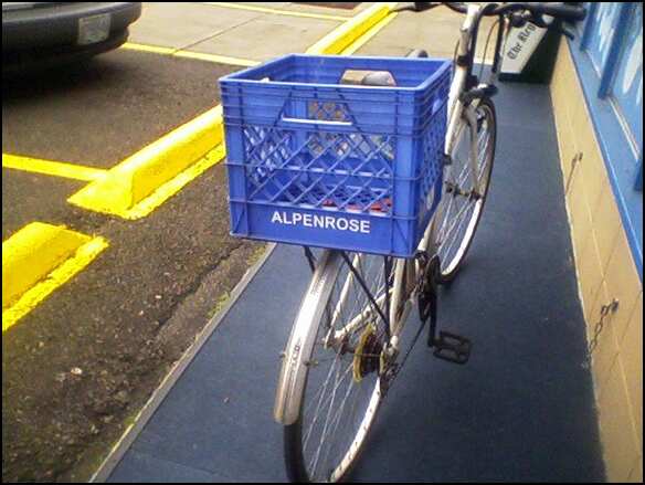 I have to say, based on my careful observation, the milk crate fad is off the charts — at least here in Eugene. It is far more widespread than either the short-short handlebar fad or last fall’s wave of swine flu.
