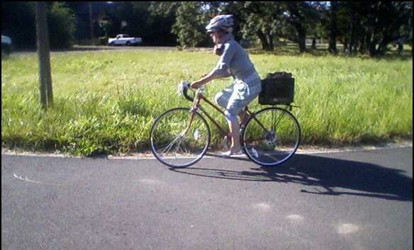 Other than that, this woman, spotted happily plying the streets of central Eugene, looks contended enough to have come straight out of a Schwinn catalog. Something like this, from 1964: