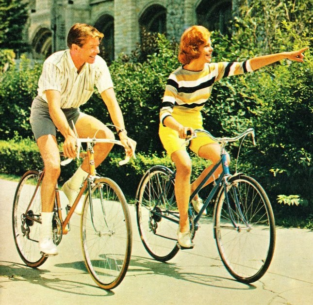 The fashions change, of course, along with the safety gear. But as ads go, it’s the same idea, of course: The joy that can be brought by cycling. The healthfulness of exercising in the fresh air and sunshine. The guy, hoping to score …