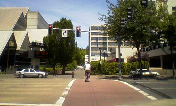 If the city of Eugene wishes to improve conditions for bicyclists, it should instruct the police to stop issuing citations to bicyclists who run stop signs or red lights. When a bicyclist can see with certainty that there are no cars coming for more than a block in either direction, it is absolutely absurd to expect her to discard the kinetic energy that her leg muscles have been working to maintain by coming to a full stop. … Talk about a victimless crime! Riding a bicycle through a stop sign makes smoking funny herbs or paying someone to help you have an orgasm look like grand theft auto! … Bicyclists are doing exactly the right thing. Their exemplary behavior should be rewarded, not punished by imposing on them the same laws that were written to apply to automobiles traveling at high speeds, weighing over a ton and suffering from restricted visibility.