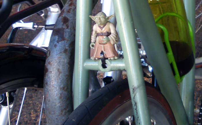 That’s cool. Using The Force is good when you are riding a fixie, you know. And Yoda is kind of like a telepathically activated brake, too.
