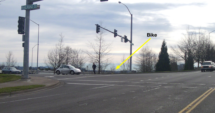 (It finally dawned on me that what probably happened is that this bike fell off of a car’s rear-mounted bicycle rack and was discovered missing a short time later. But that’s not nearly as interesting as the other possibilities.)