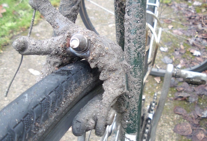 Granted, I am not fanatical when it comes to maintaining my bike. Here’s my rear brake the other day: