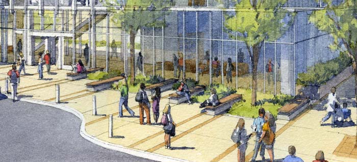 Yeah, they look like students all right, but if these things were truly realistic there would be — on such a lovely day as is shown here — a dude with no shirt riding his BMX bike on the sidewalk. So if anyone out there is responsible for creating these little figures that the architects can drag and drop onto the rendering, that’s one I think should be added.