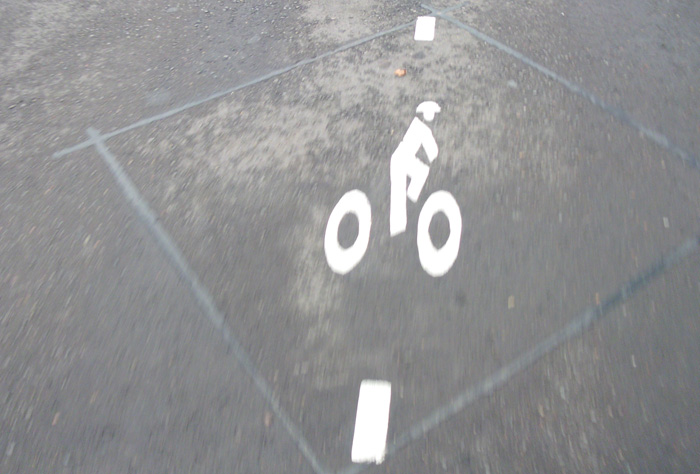Also, I’ve noticed that in a couple of places around town they’ve painted markings showing where your wheels are supposed to be.