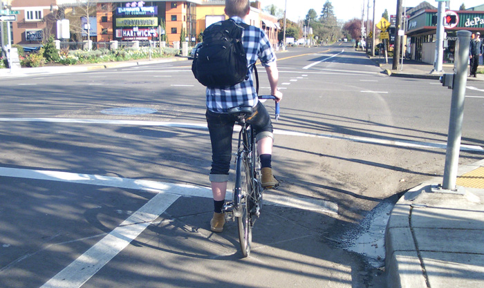 Shane makes good points. I also agree that 19th and Pearl is awkward on a bike. Seems to me it’s an unusual case, what with Pearl being a one-way street, and lots of cyclists headed to the Amazon path — or perhaps to the high school.