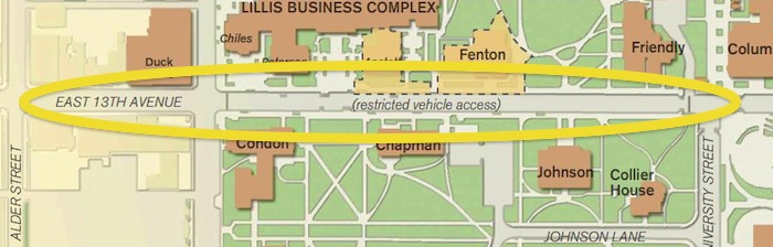 Also note that the city is responsible for the maintenance of streets around the University of Oregon.