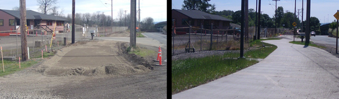 As long as we are talking construction, the new bike path to link the River Road-Beltline area to the Riverbank Trail is coming along nicely. Here are some views (in February on the left, and this month on the right):