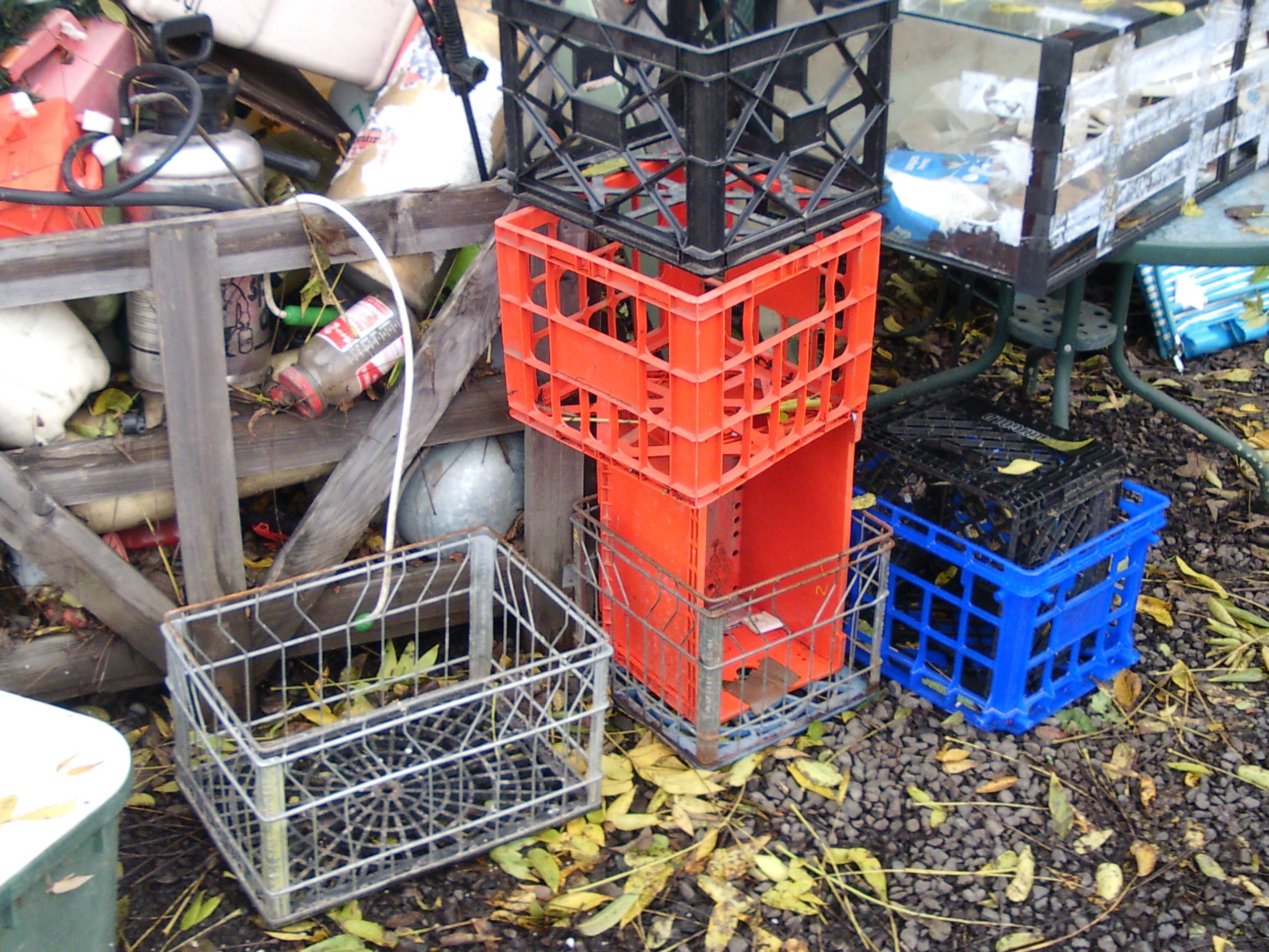 c) crate: Here you have a number of options, depending on budget and taste. If saving cash is your biggest concern, search the garages, attics and basements of friends and neighbors. Check the loading dock at Albertson’s, Safeway, or, yes, DariMart. Or even the alley back behind Capella Market …