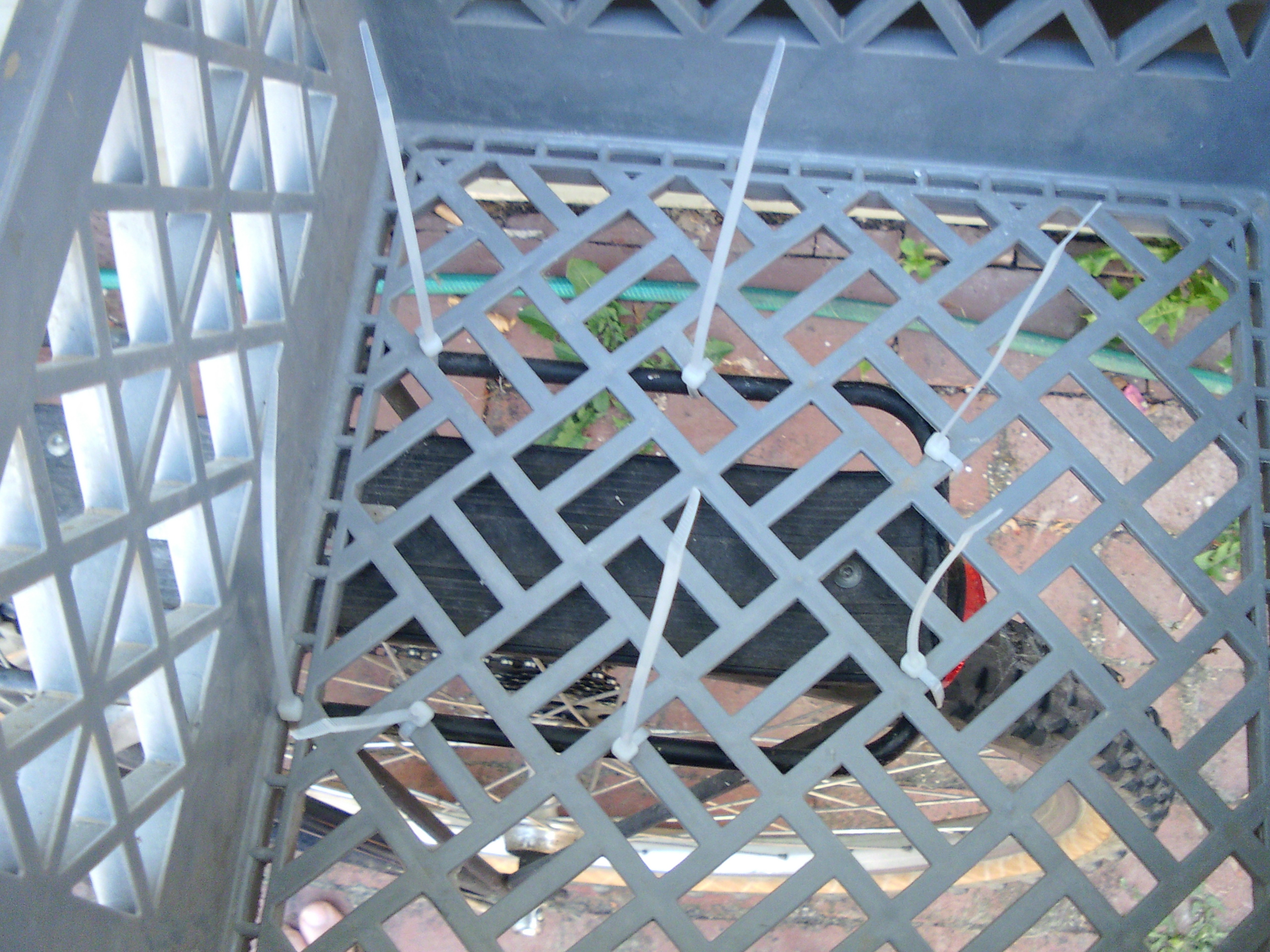 Step three: Rip open your pack of zip ties and use them to fasten the crate to the rack: