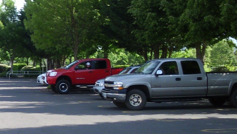 We would think if you are going to Costco you are loading up on a bunch of crap. You’re going to be coming out of the store with cartloads of stuff. Wouldn’t it be easier to load up your truck if you weren’t backed in? But what do I know about Costco? Not much.