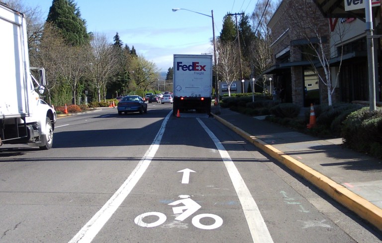 I say I want to thank the reader for sending this question, because this will allow me to dig into my photo collection to bring you some previously unpublished photos of bike lane obstructions.