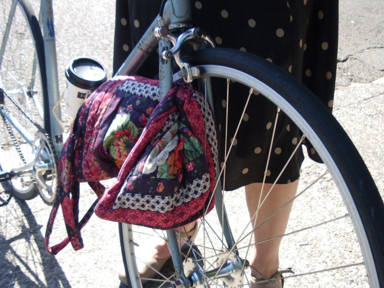 We call it: Purse-upon-Spokes. Which really was totally unnecessary as my fixie does have a brake. But it’s good to be safe, I guess.
