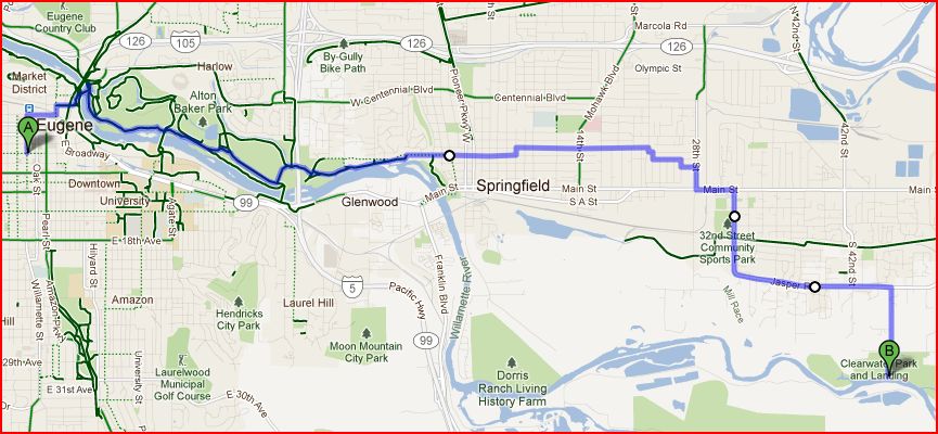 Another great ride on the Springfield side of things is to head in the direction you went, and then from 32nd take Virginia/Daisy past Bob Straub and take Weyerhaueser to Hills Creek, then turn left on Hills Creek and ride until it’s closed off as a gravel logging road.. (or keep going!) .. it’s shady, has nice new pavement, and there are only a few houses up there, so there isn’t much traffic.