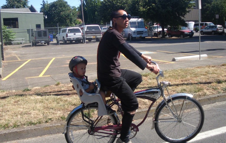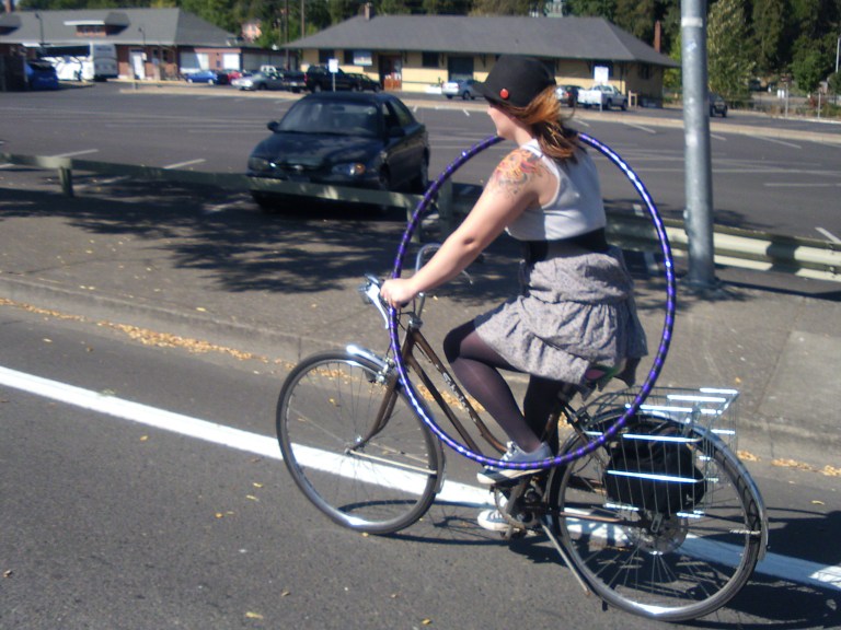 3. Not one photo of an adult wearing a helmet. Oh there are some up North here who might take the entire city of Eugene to task for that. They might say, “What a bunch of scofflaws and scallawags! Well! Darwin will take care of them. Don’t they know that lights, vests, kevlar body armor and helmets (for chrissakes) will protect them from bodily harm and prevent placing the burden on society of keeping their brain dead, comatose bodies alive!?!?!”