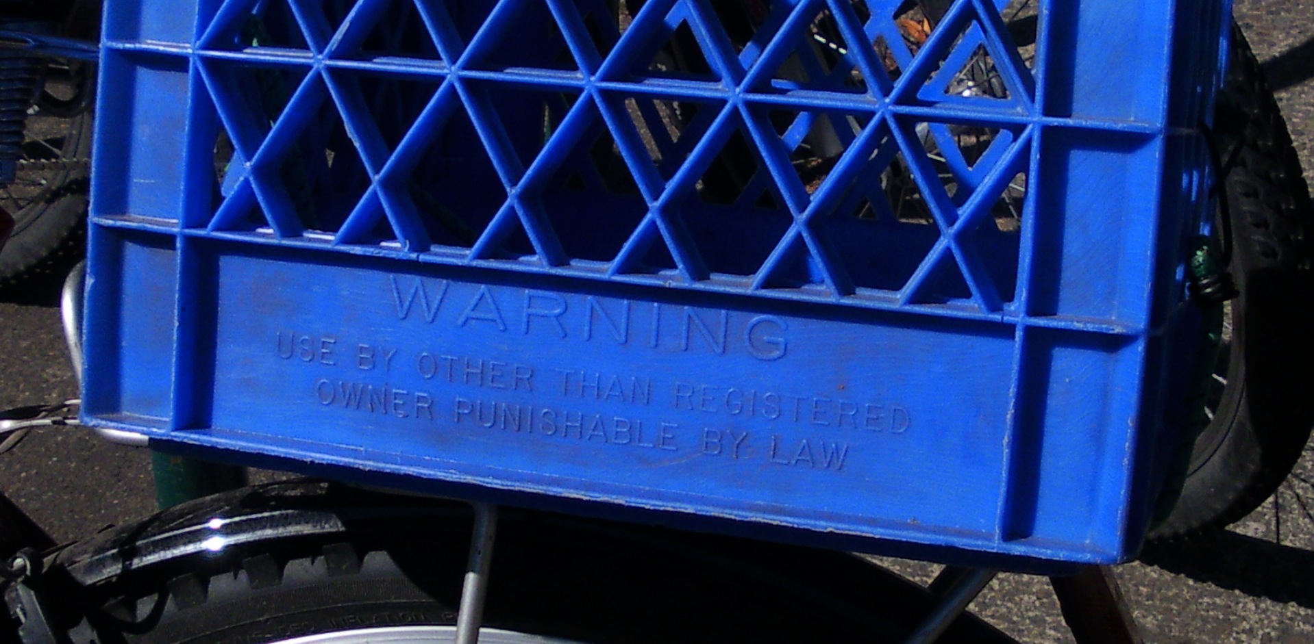 [Higher-risk areas? You are going to park your $2,299 Fr8 in a “higher-risk area,” and you’re worried about someone stealing the milk crate?]
