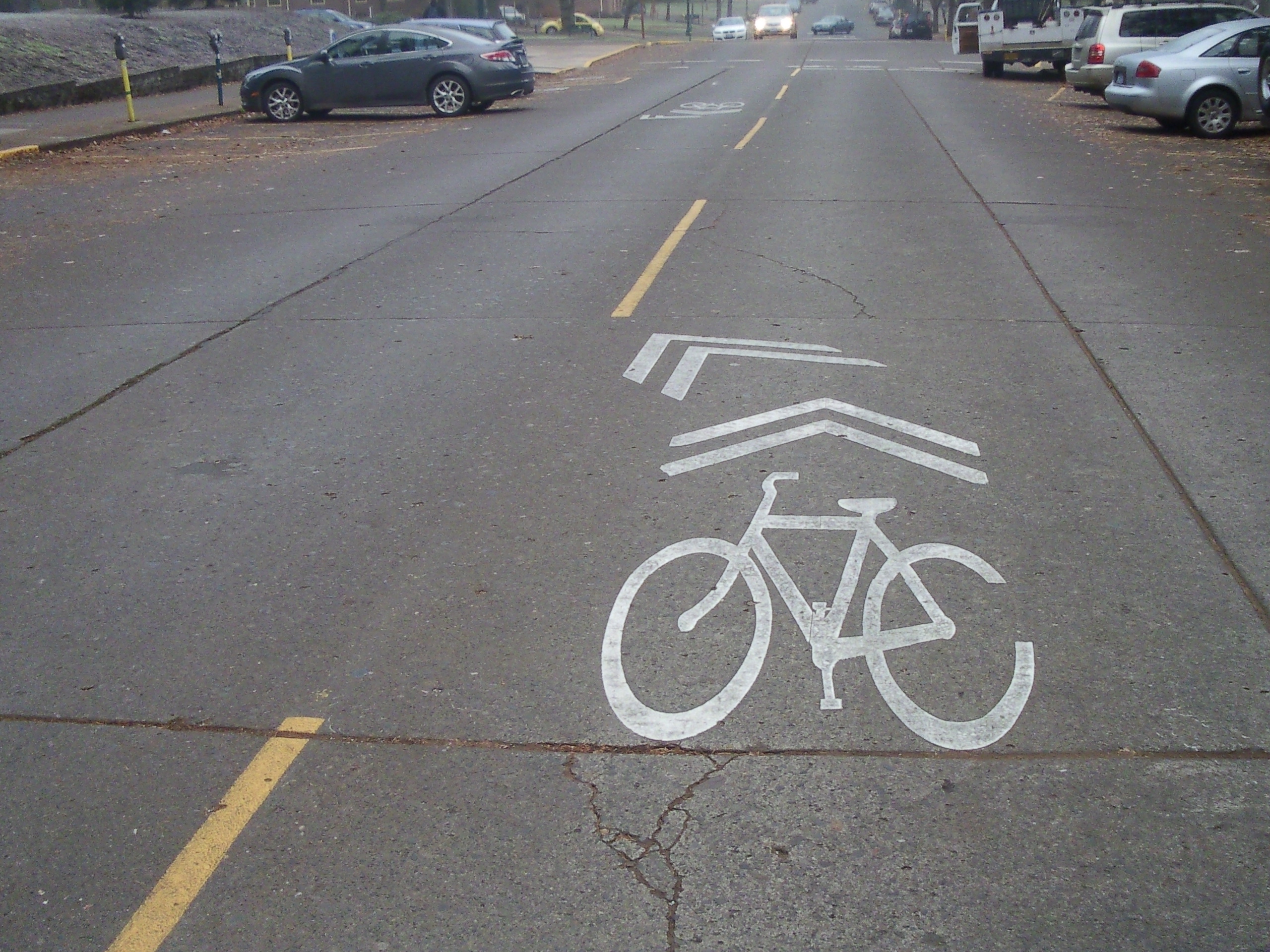 The purpose of a sharrow is, and we quote from the M.U.T.C.D., “to assist bicyclists with lateral positioning in a shared [with cars] lane.”