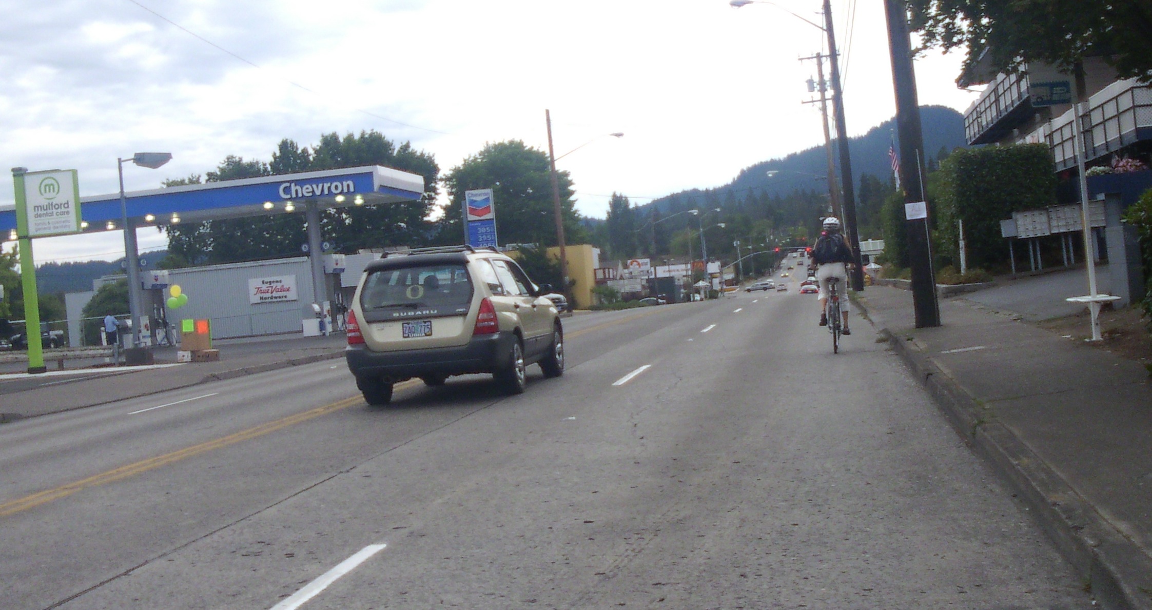 I have such a hard time biking in this area, but there are so many businesses that I frequently visit! I don’t want to bike on the sidewalk because it is dangerous, but biking in the street is very dangerous also! People drive way too fast (isn’t the speed limit 25?), the lanes aren’t wide enough, and the road is in horrible shape. I agree that a bike blvd. on Oak doesn’t make access to the shops on Willamette any easier. I really hope their “plan” is revised!!!