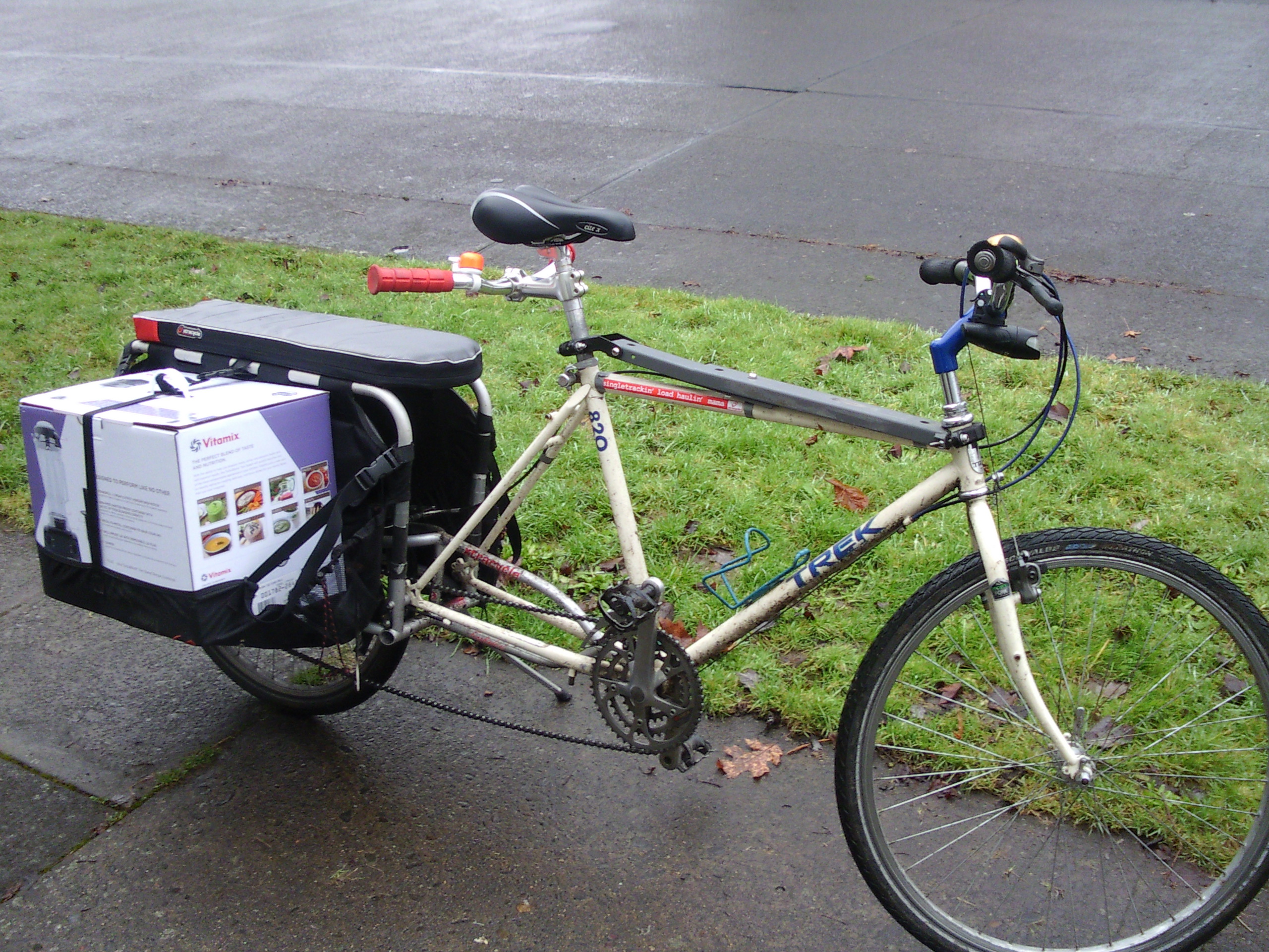 I’ll back up a minute to mention that I enjoy doing errands by bike, even in the rain. And now that we have the Xtracycle, carrying stuff home is easy.