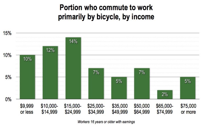 But the speculation among those who did the study is that among poorer people, those “bike trips” tend to be transportation. Among the wealthier, “bike trips” tend to be for recreation.