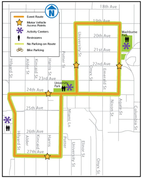 For four hours, it’ll be like a post-apocalyptic world without cars. You can ride the centerline, weave all over the street and have a great time. This year the route, three miles total, is a figure-8 through the South University neighborhood. Here’s the city’s map of the event: