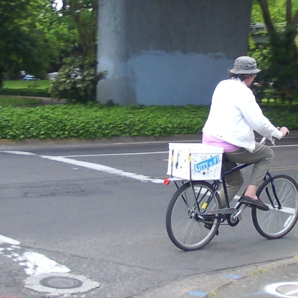 I’m a longtime lover of the two-wheeled contraption known as the bicycle. In the past, I’ve toured and ridden with clubs and raced — not well, mind you. I languished in Cat 5 as a road bike rider and Sport class as a mountain bike racer. But I did things like intervals on training rides and I kept track of my a.m. resting heart rate. So much free time we have when we’re young! Things change. These days most of my riding involves commuting to and from my job, something I’ve been doing for literally decades now. I can’t claim I pedal to work every day — but a lot of days. Yes, I do have a car, too. I’m not a fanatic. Anyway, I see things on my commute and have thoughts about them. I will post those things here. Yes, basically this is a rip-off of Bike Snob. So be it. He’s in Brooklyn for God’s sake. This is Eugene. Contact me at: eugenebicyclist [at] gmail [dot] com